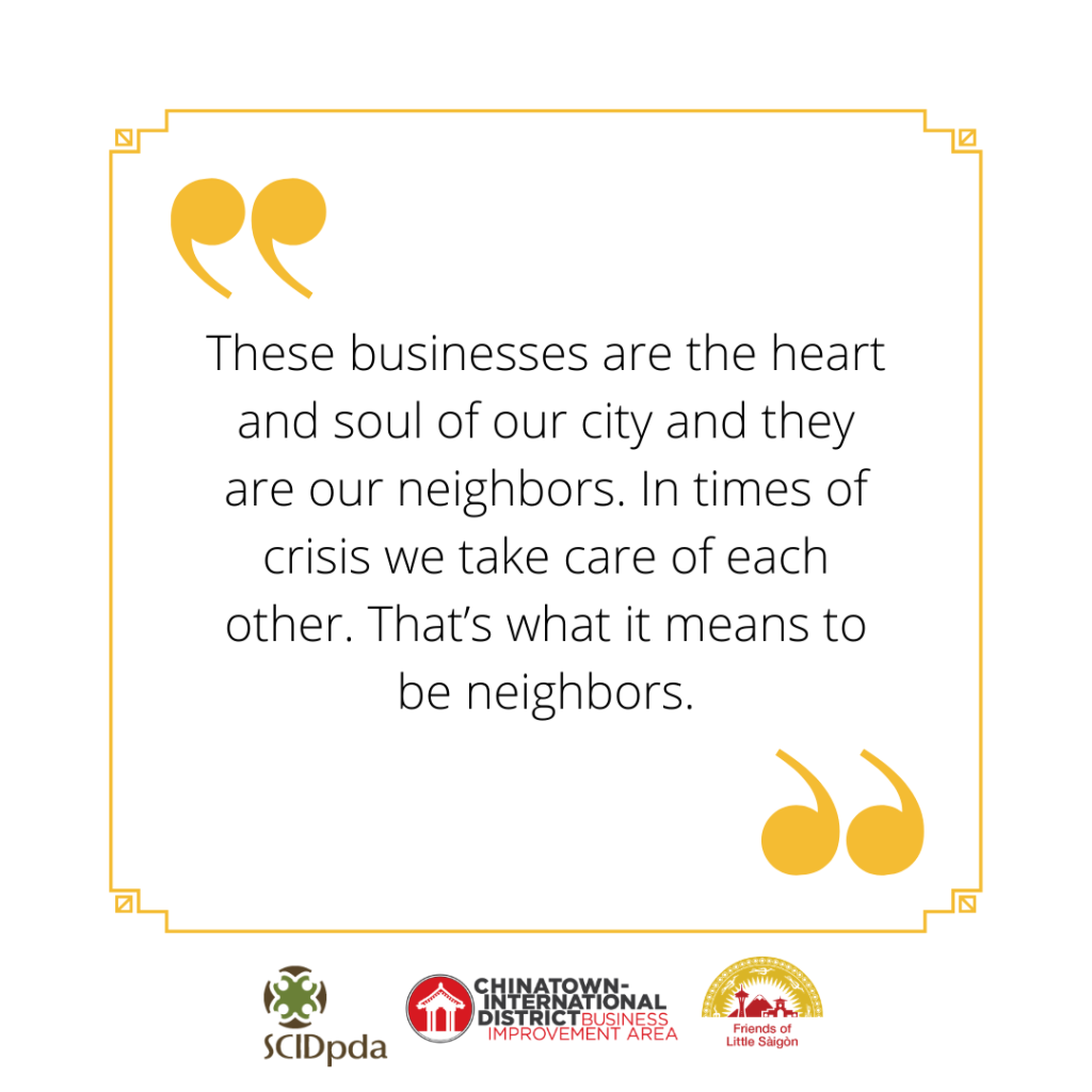 July 28, 2020: Relief Fund for Chinatown-International District Small Businesses Raises $750K and Provides Aid to 165 Businesses (Read the announcement here.)